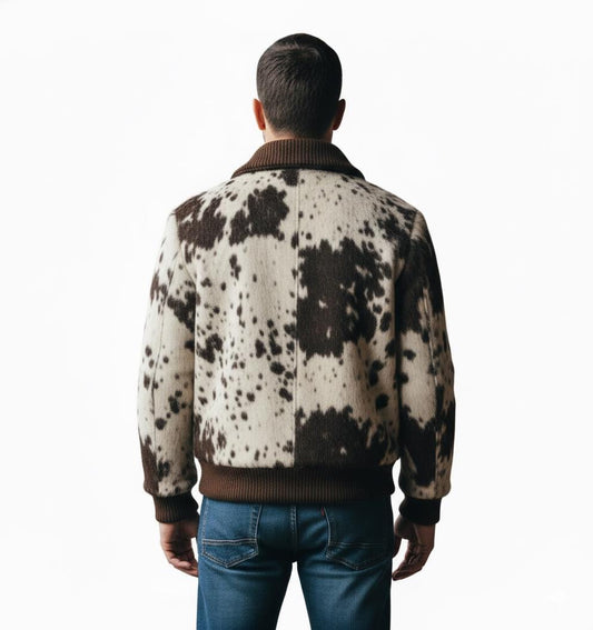 Handcrafted Cow Fur Leather Bomber Jacket: Unique Winter Outerwear