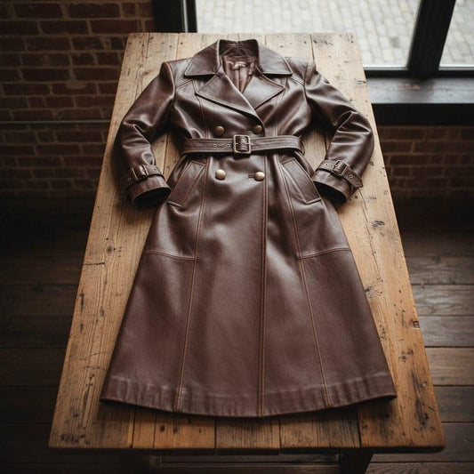Handmade Brown Cow Leather Trench Coat: Women's Belted Winter Jacket