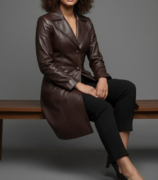 Handmade Brown Leather Trench Coat: Genuine Cowhide Long Jacket