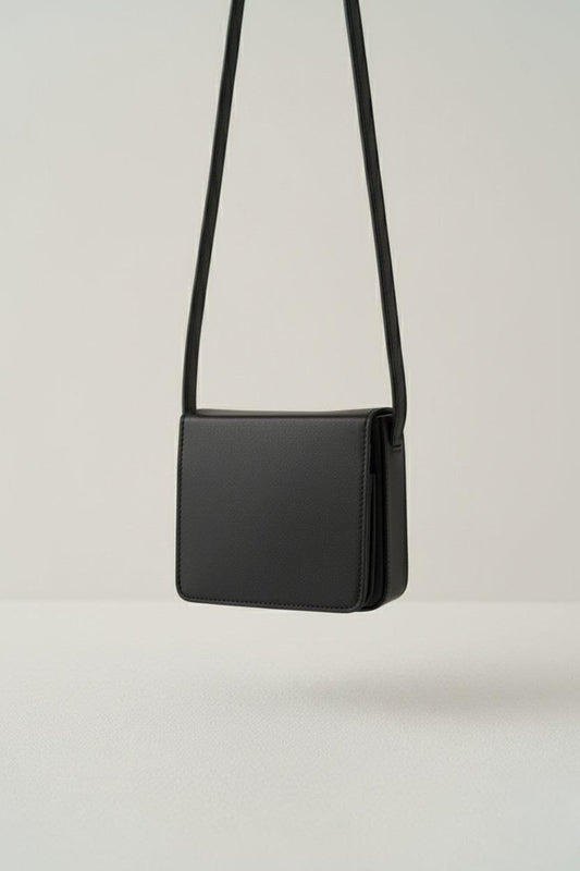 Minimalist Black Leather Crossbody Bag – Small Square Shoulder Purse for Women