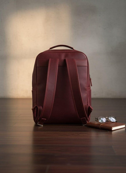 Handmade Burgundy Leather Laptop Backpack: Unisex Travel Rucksack