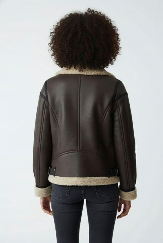 Women's Cow Leather Shearling Biker Jacket: Handmade Moto Coat